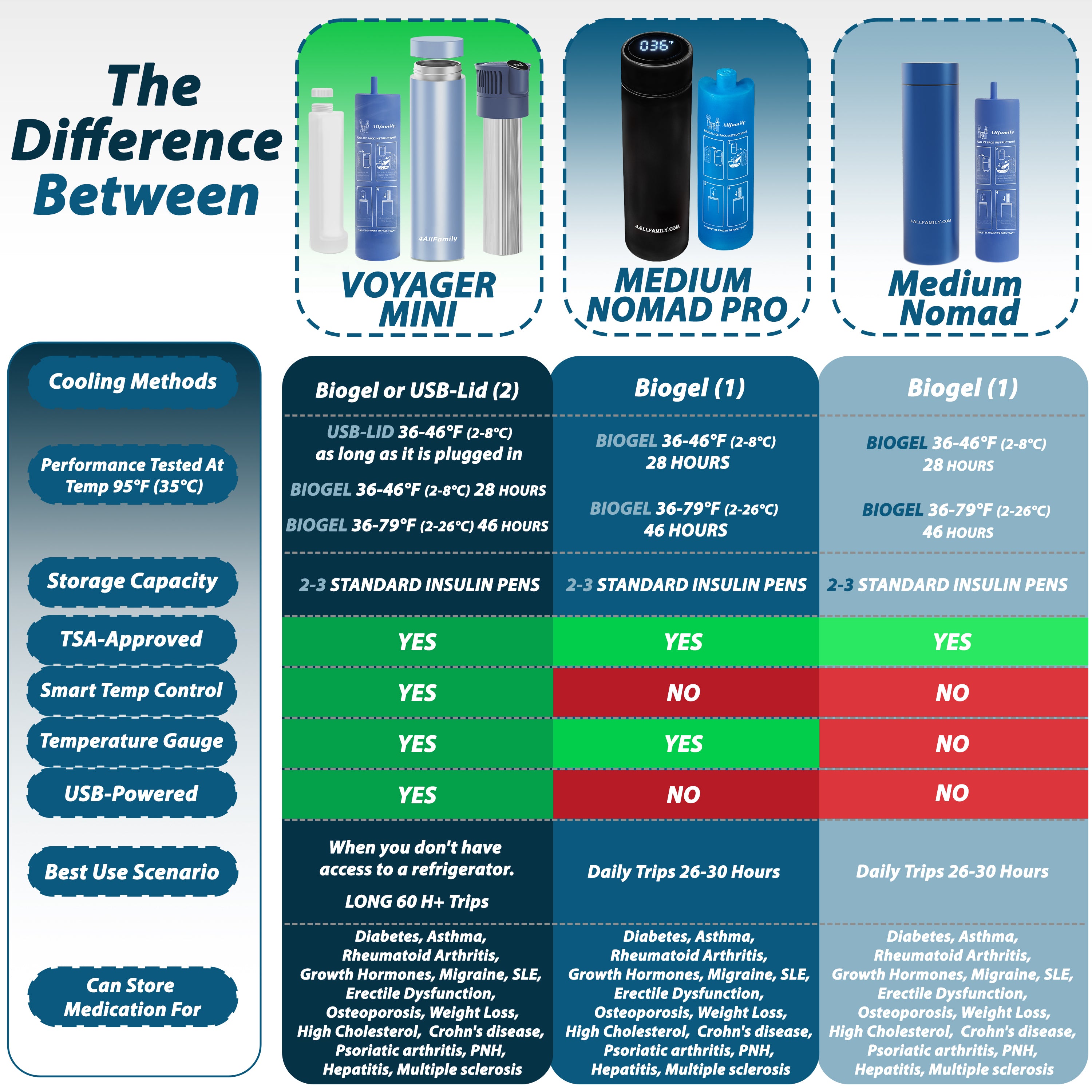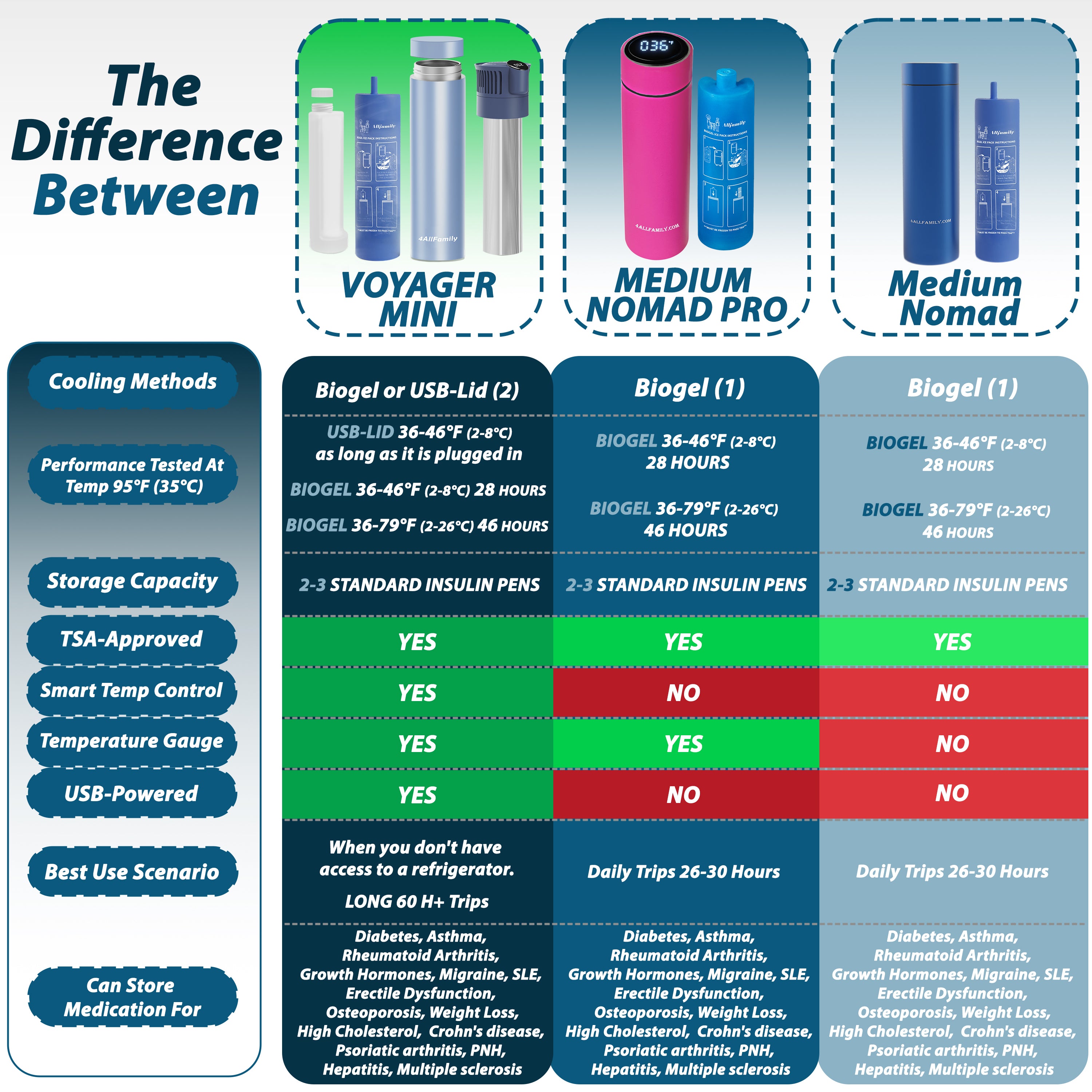 The Nomad Pro Portable Medication Cooling Case gives you everything you love about the Nomad-plus a built-in temperature display for real-time peace of mind. Safe, reliable, and travel-ready, it's the ultimate upgrade for insulin & medication storage on the go.
